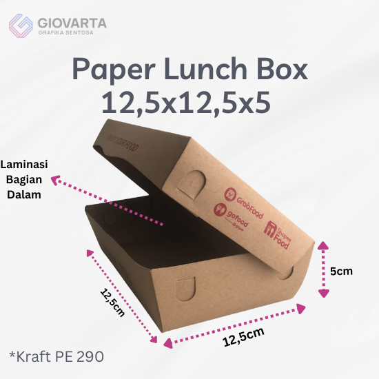 Paper Lunch Box ( 12.5x12.5x5 ) Kraft PE 290 Cetak 1 Warna